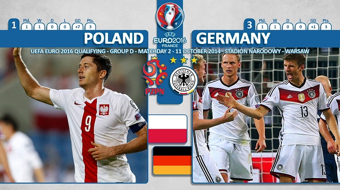 در دمین هفته از رقابتهای انتخابی جام ملتهای اروپا، یورو ۲۰۱۶، دو تیم لهستان و آلمان به قضاوت آقای پدرو پرونسکا از کشور پرتغال، به مصاف یکدیگر خواهند رفت.