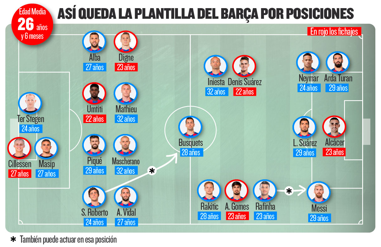 حالا با ورود ستاره هایی چون سیله سن، آلکاسر، گومس، اومتیتی، دنیس سوارس و لوکاس دینیه، بارسلونا ترکیبی قدرتمندتر از فصول گذشته خود در اختیار دارد.