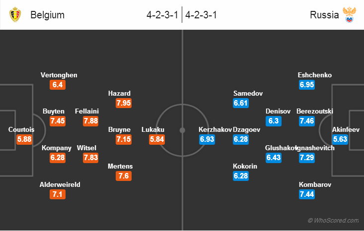 ترکیب تیم بلژیک برای این بازی جذّاب خواهد بود چرا که یاران مارک ویلموتس در بازی قبل برابر الجزایر بازی را بسیار ضعیف آغاز کردندامّا تعویضهای نیمه دوم ورق را برگرداند.