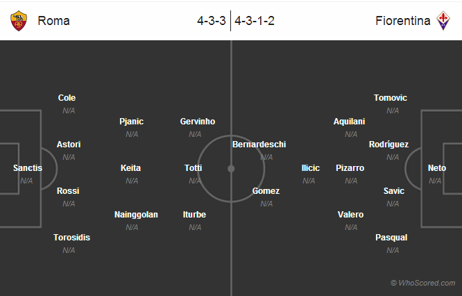از طرفی فیورنتینا به عنوان نخستین حریف برای جالوروسی در لیگ، کمی شرایط را سخت کرده است و بعید است رم بتواند در نخستین دیدار خانگی خود، با مشکلات متعدد در خط دفاعی به راحتی به پیروزی دست پیدا کند.